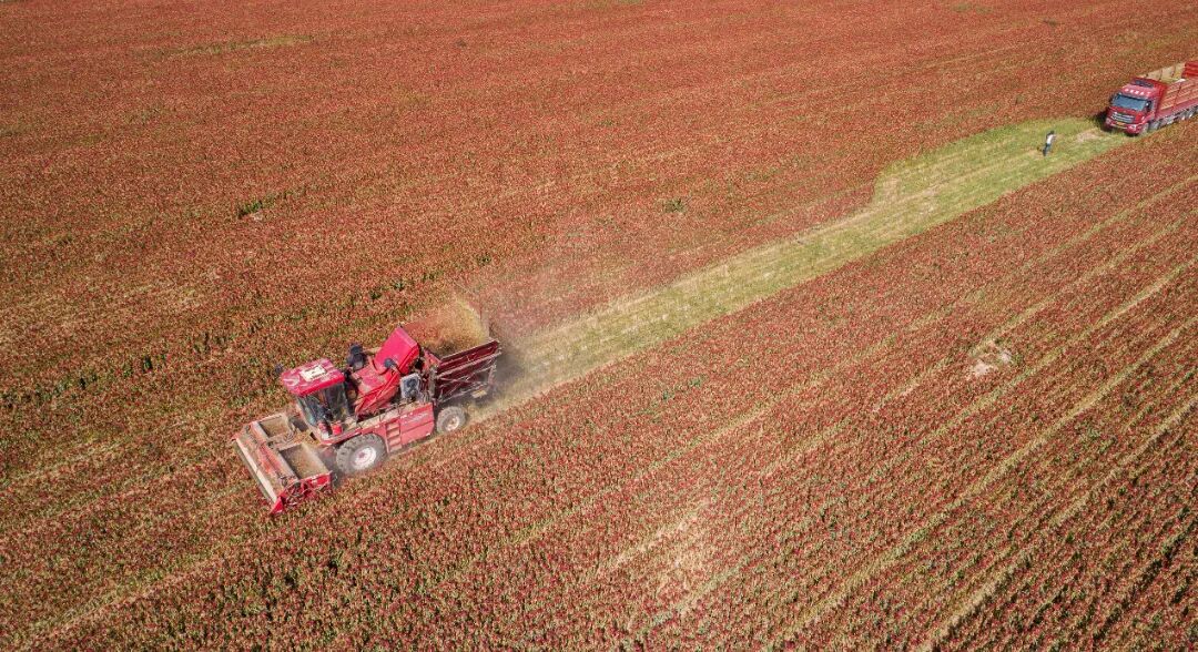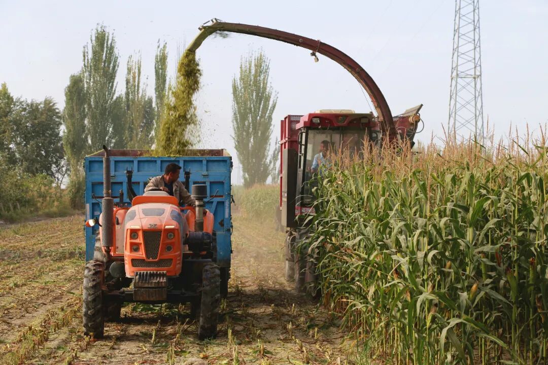 9月29日,阿瓦提县塔木托格拉克镇阿克亚村村民抢抓农时收割青贮玉米。通讯员 包良廷 摄